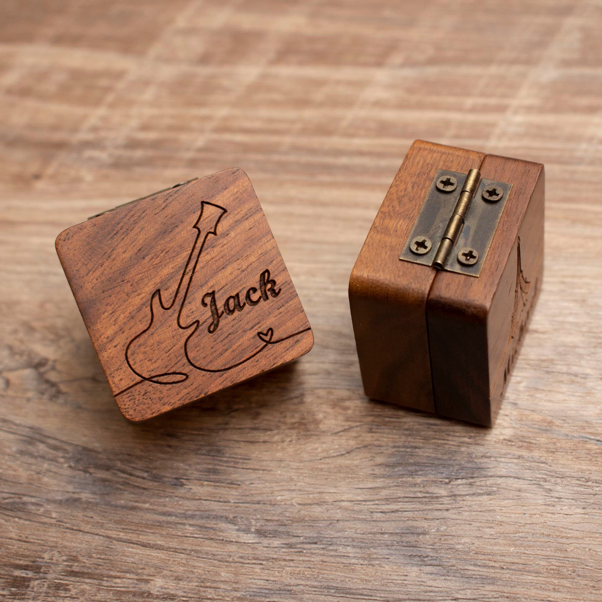 Personalized Wooden Guitar Picks with Case, Custom Guitar Pick Holder, Plectrum Box Guitar Player Gift, Father's Day, Gifts for Christmas